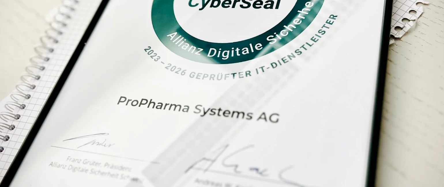 Im Kampf gegen Cybercrime verleiht die Allianz Digitale Sicherheit Schweiz ProPharma Systems AG nach einem umfassenden IT-Security-Audit die Zertifizierung "CyberSeal". Das Gütesiegel bestätigt, dass wir geeignete technische und organisatorische Massnahmen in unserem Betrieb umsetzen, um uns und unsere Kunden angemessen vor Cyberrisiken zu schützen.